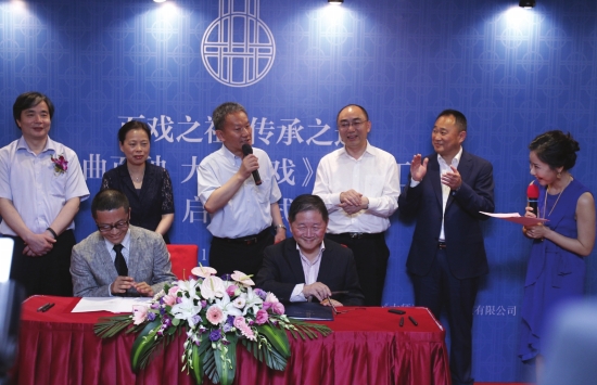 國家新聞出版廣電總局副局長鄔書林(后排左三)、湖南省委宣傳部副部長魏委(后排左二)等領導見證《昆曲百種大師說戲》出版工程啟動儀式簽約