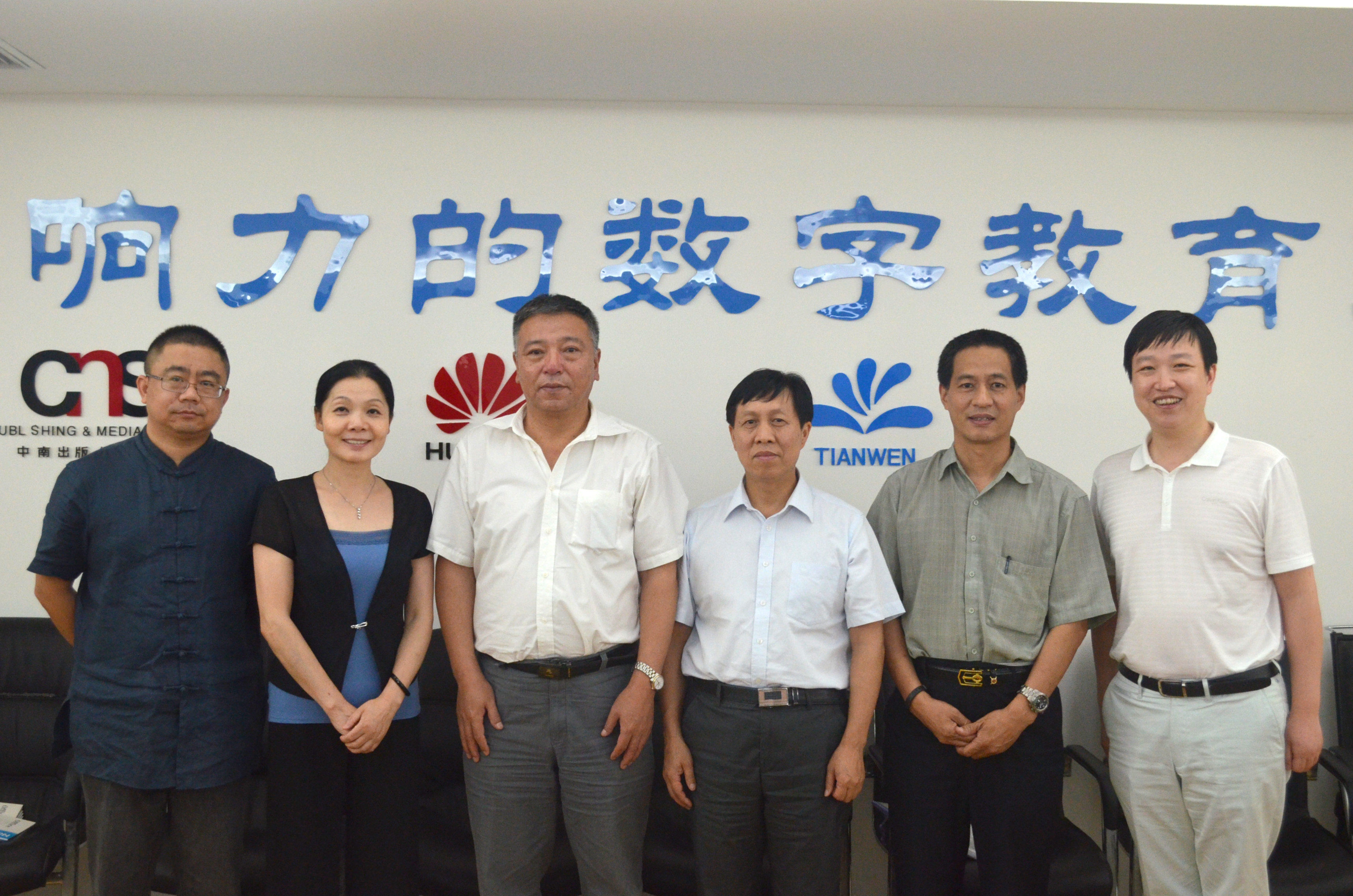 中南傳媒常務(wù)副總經(jīng)理,天聞數(shù)媒董事長彭兆平(左二)陪同謝俊旗司長(左三)視察天聞數(shù)媒