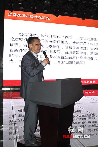 (中南傳媒董事、紅網黨委書記、董事長舒斌介紹了去年11月以來紅網改版升級的情況和下一步工作計劃。)