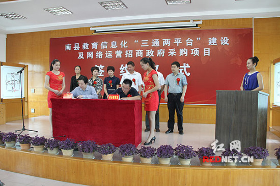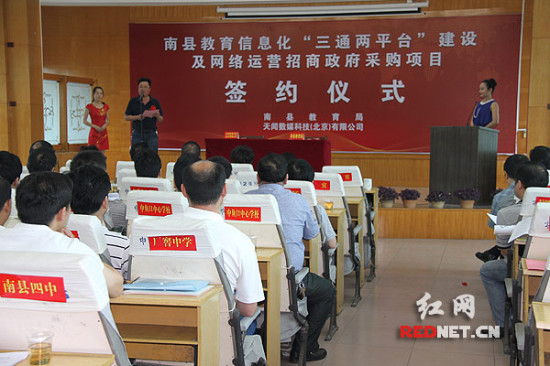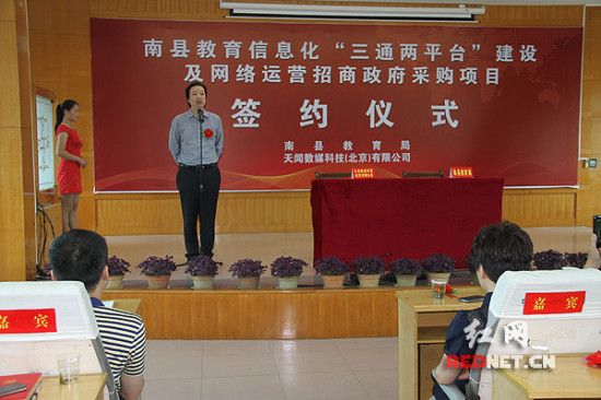 6月4日,湖南益陽(yáng)市南縣教育局大會(huì)議室座無(wú)虛席,南縣教育局與天聞數(shù)媒科技(北京)有限公司就教育信息化“三通兩平臺(tái)”建設(shè)及網(wǎng)絡(luò)運(yùn)營(yíng)簽訂了合作協(xié)議。根據(jù)協(xié)議,天聞數(shù)媒科技(北京)有限公司在合約簽訂后的90個(gè)工作日內(nèi)為南縣所有學(xué)校建成“三通兩平臺(tái)”,標(biāo)志著南縣教育信息化即將跨入“高速時(shí)代”。
