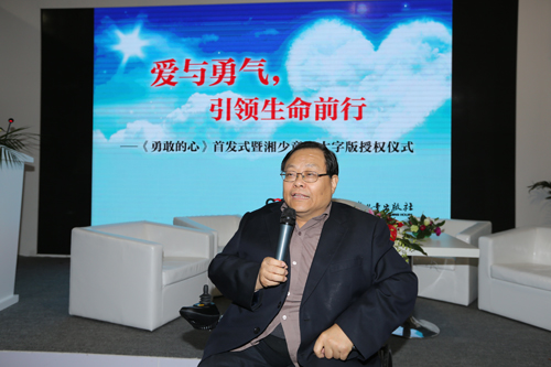 盲文社社長張偉則表示,《勇敢的心》是一部非常美的書,不僅內容溫馨感人,更傳遞了溫暖和正能量。他提到,當前盲人文化產品的生產還很難滿足需求,與湖南少兒出版社合作推出大字版和有聲讀物,可以為視力殘疾的孩子提供優質的閱讀資源。他認為這樣的合作是充滿了善意、愛心和溫情的。他還對我社給予的支持表示感謝。