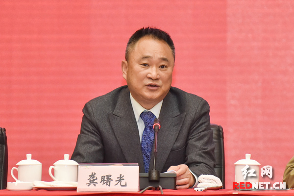 湖南出版投資控股集團黨委書記、董事長、中南傳媒董事長龔曙光主持會議