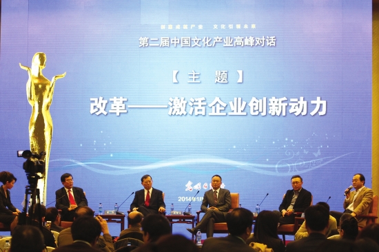 1月18日,北京,“2013中國文化產業年度人物”頒獎典禮結束后,第二屆中國文化產業高峰對話在首都酒店舉行舉行。龔曙光董事長與其他年度人物就“改革——激活企業創新動力”等主題進行對話。