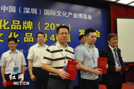 5月16日,中國文化品牌藍皮書《中國文化品牌發展報告(2014)》首發式暨《湖南文化品牌40強》發布活動隆重舉行,會上對中南傳媒、紅網等入選湖南文化品牌40強的企業代表授予證書。