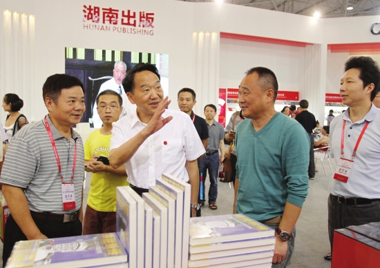 8月2日下午2時許,第24屆書博會湖南代表團展館,在代表團團長朱三平,湖南出版投資控股集團黨委書記、董事長,中南傳媒董事長龔曙光的陪同下,國家新聞出版廣電總局黨組書記、副局長蔣建國詳細了解湖南參展情況。